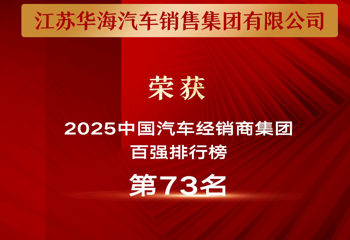 江蘇華海汽車集團(tuán)榮登2025中國(guó)汽車經(jīng)銷商百?gòu)?qiáng)榜